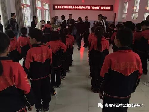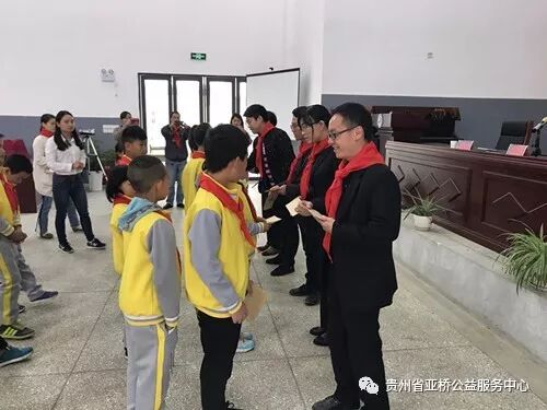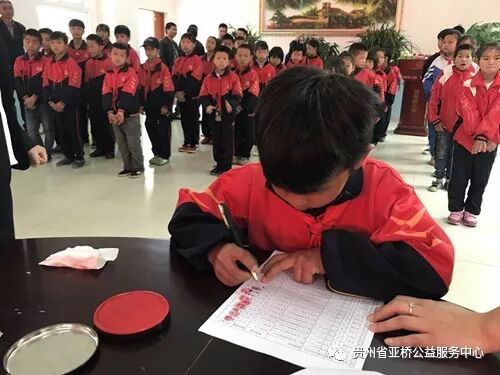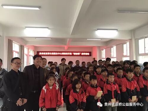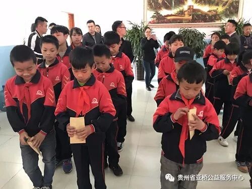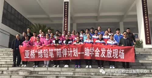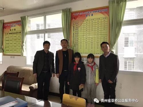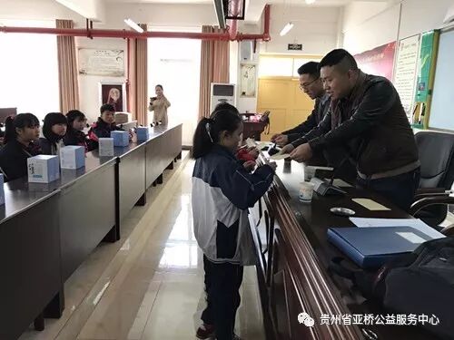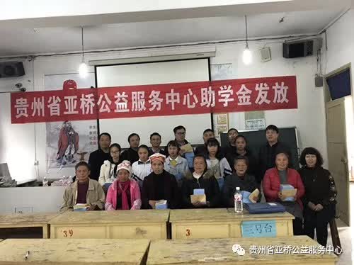 2018年3月26日亚桥公益项目执行团队在黄果树瀑恩爱心小组,社管局及教育局领导的陪同下来到黄果树旅游区思源实验小学、黄果树小学、龙宫九年制学校、蔡官小学为59名中小学生送去本学期的助学金及开展交流活动。