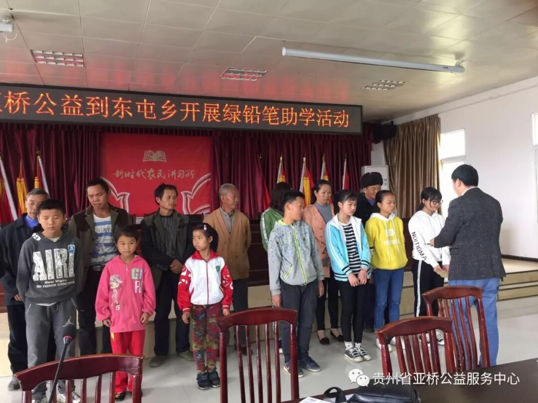 于2018年5月12日,亚桥公益黎培忠主任,韦能超老师再次来到东屯乡政府与受助的学生及部分家长开展交流活动,并发放2018年春季助学金。
