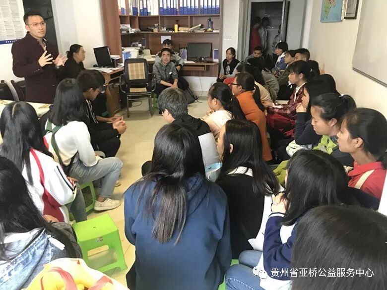 今天有40多名高中生聚集在亚桥公益的办公室,他们来自安顺周边乡镇的学生(岩腊乡、新场乡、杨武乡),在此聆听老师们的经验分享和交流,虽然没有舒适的环境,甚至连座凳也没有教室里的舒服,但他们依然津津有味的听着。