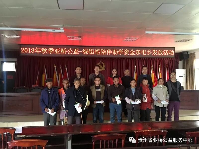 2018年10月10日,亚桥公益·绿铅笔陪伴计划项目团队来到安顺市西秀区东屯乡政府及双堡镇塘山小学为1名高中生,13名中小学生带去社会的关爱。