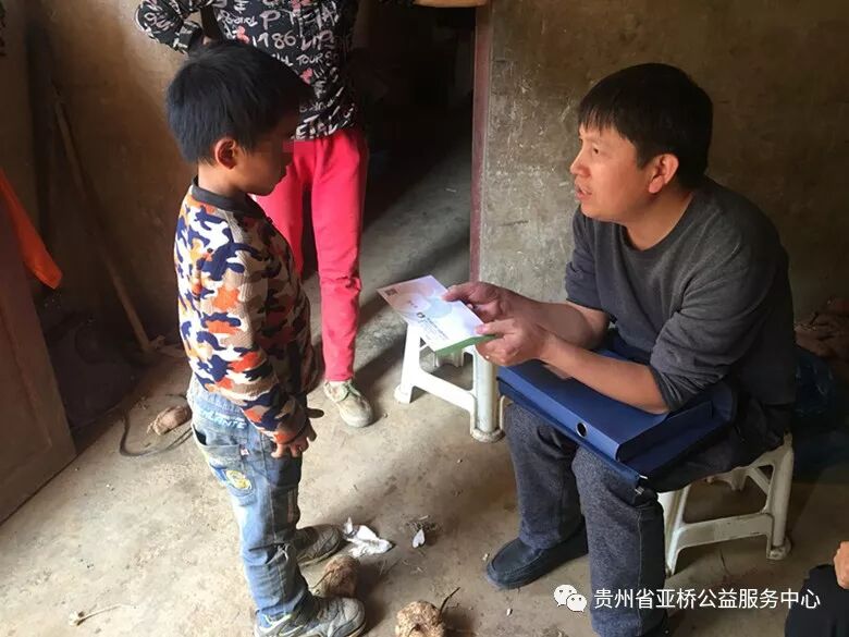 2018年11月10日绿铅笔项目执行团队来到镇宁县黄果树旅游区,在当地志愿者的陪同下,走村串户,回访20余名受助学生家庭,发给2018年秋季助学资金,共26名学生受益。