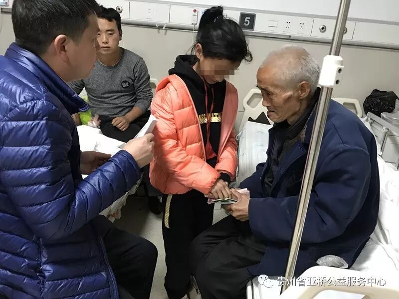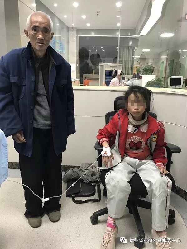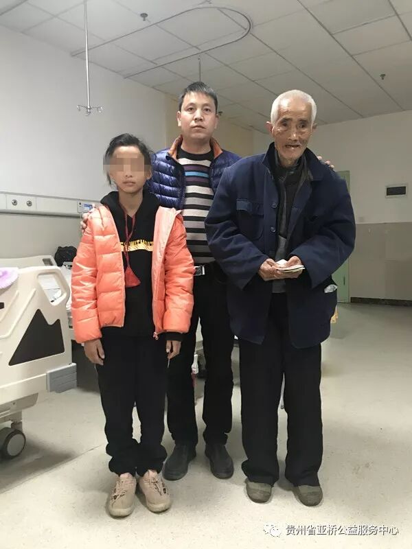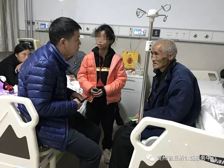 12月1日(星期六)恰逢小花胃病再次发作入住安顺市人民医院,【亚桥公益】志愿者到医院探访小花,顺便带去两兄妹“绿铅笔助学金”。当志愿者把助学金交到小花和她的父亲手里时,孩子十分高兴,父亲更加的感动,流着泪说道:“孩子来住院的时候因为家里没钱,我们借有500元来做生活费”。