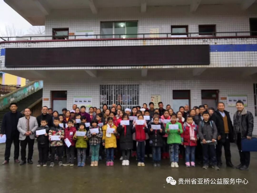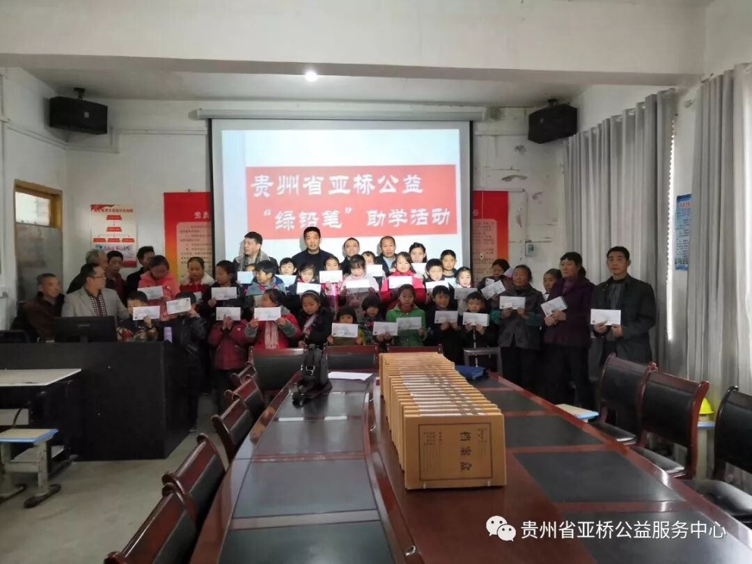 2018年12月8日,贵州省亚桥公益服务中心绿铅笔陪伴计划项目执行团队到贵州省遵义市乐山镇新土村,为该地共39名优困小学、初中学生发放2018—2019年度第一学期“绿铅笔”秋季助学金。