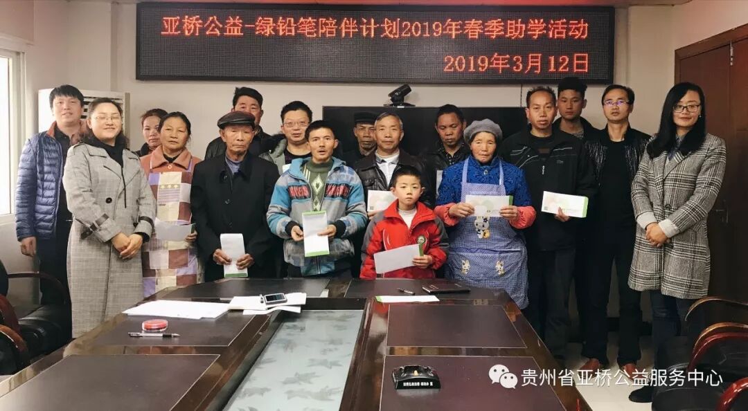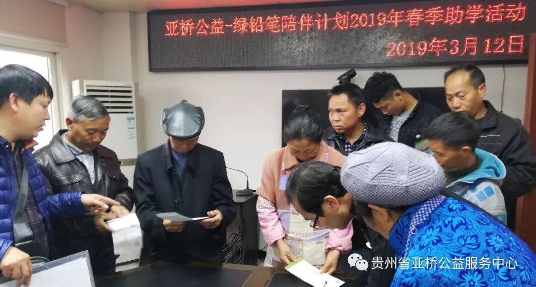 2019年3月12日,贵州省亚桥公益服务中心工作人员来到安顺地区东屯乡举行了“亚桥公益-绿铅笔陪伴助学金”发放仪式。发放现场东屯乡教育分管领导李永芬委员代表东屯乡党委、政府对亚桥公益服务中心表示感谢!同时对受助学生及家长提出要求,希望他们在亚桥公益服务中心及全社会爱心人士的关爱下努力学习,加强道德文化素质修养,成长为德才兼备的人,为祖国的建设贡献力量!