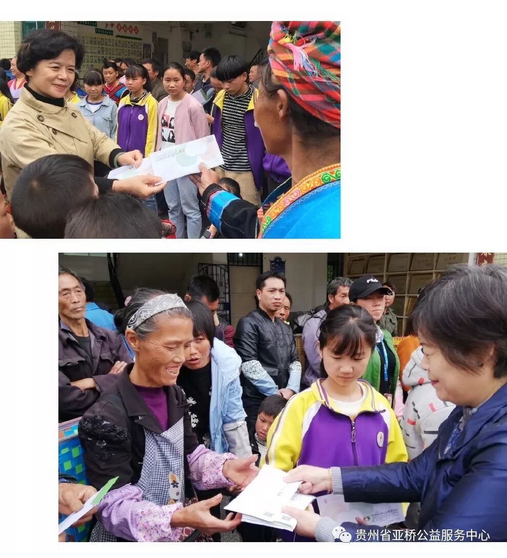 今天的助学活动亚桥公益很荣幸的邀请到了贵州省农工党副主委、政协副秘书长黄惠玲女士,原民政厅副厅长、巡视员甄燕驰女士,岩腊乡的人大吕主席出席参加。在助学金发放仪式上黄秘书长发言说道:“省政协几年前开始与亚桥公益合作,围绕推进未成年医改、教育救助等政策的完善做过几次人大提案,共同促进了几个惠民政策的完善和落实。所以省政协一直特别认可亚桥公益和众多的公益组织在基层在最需要的人民群众中间起到的公益作用,真的是查缺补漏的发现和回应很多信息闭塞的偏远地区困难群体的需求问题”。