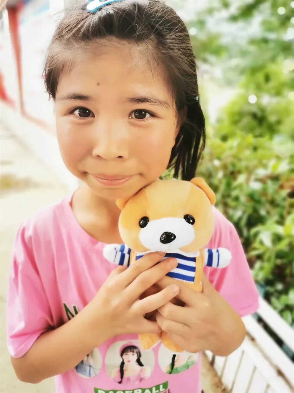 在遵义播州,孩子在参加活动后拿到了一只玩具小熊,孩子开心地说:“弟弟有一只小熊,现在我也有了!老师谢谢你,你能常来看我们和我们一起玩吗?!”