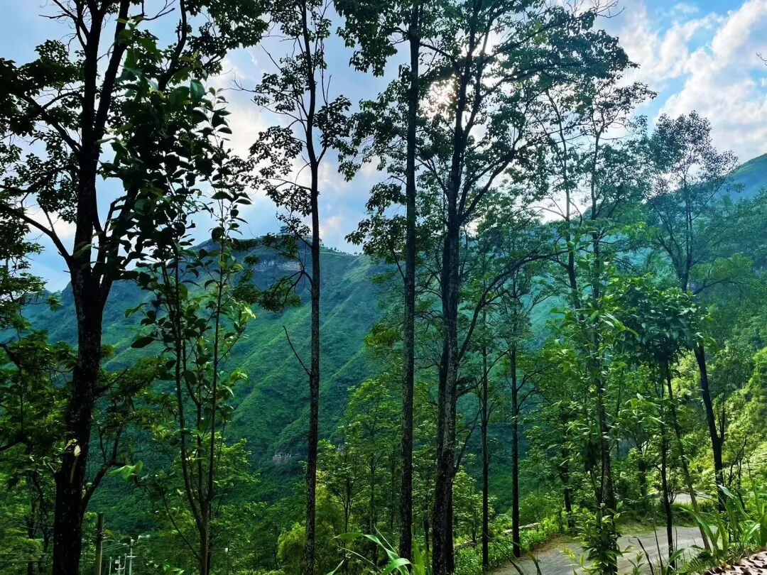天湛蓝,树浓绿