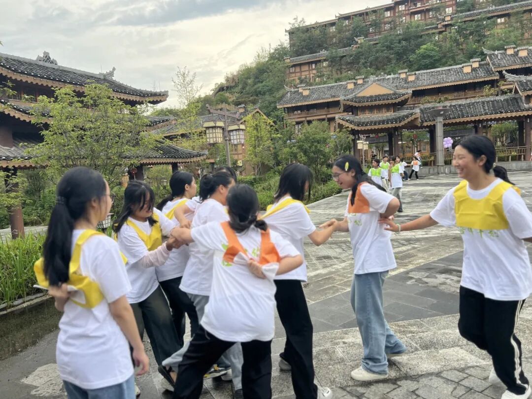 每个小队扛着队旗勇往无前的向着小镇关卡出发,有的在月亮湖七手八脚怪兽过河、有的登顶三宝塔尖穿越A4纸、有的篮球场上一球定输赢、有的虎顶公园一分钟挑战彝族踢踏舞、有的牛顶公园团队合作气球接力赛。最终,汇集蒙娆广场挑战字面颜色认读大挑战,在这个过程中员们翻山越岭、团结合作勇闯关卡,发挥自己的智慧向着宝藏出发。