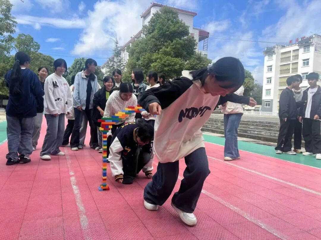 在晴隆县民族中学的活动现场,51 名高中生率先开启了 “六块积木” 的奇妙旅程。从 “模型快照” 中初识积木的魔力,到 “背靠背” 环节考验彼此的默契,再到 “积木密码传递” 激发无限创意,最后在 “六块积木运输大比拼” 中感受协作的快乐,同学们的欢声笑语驱散了学业的疲惫。每一块积木的拼接,都是一次灵感的碰撞;每一次团队协作,都凝聚着青春的活力,大家在玩乐中释放压力,在互动中收获友谊。
