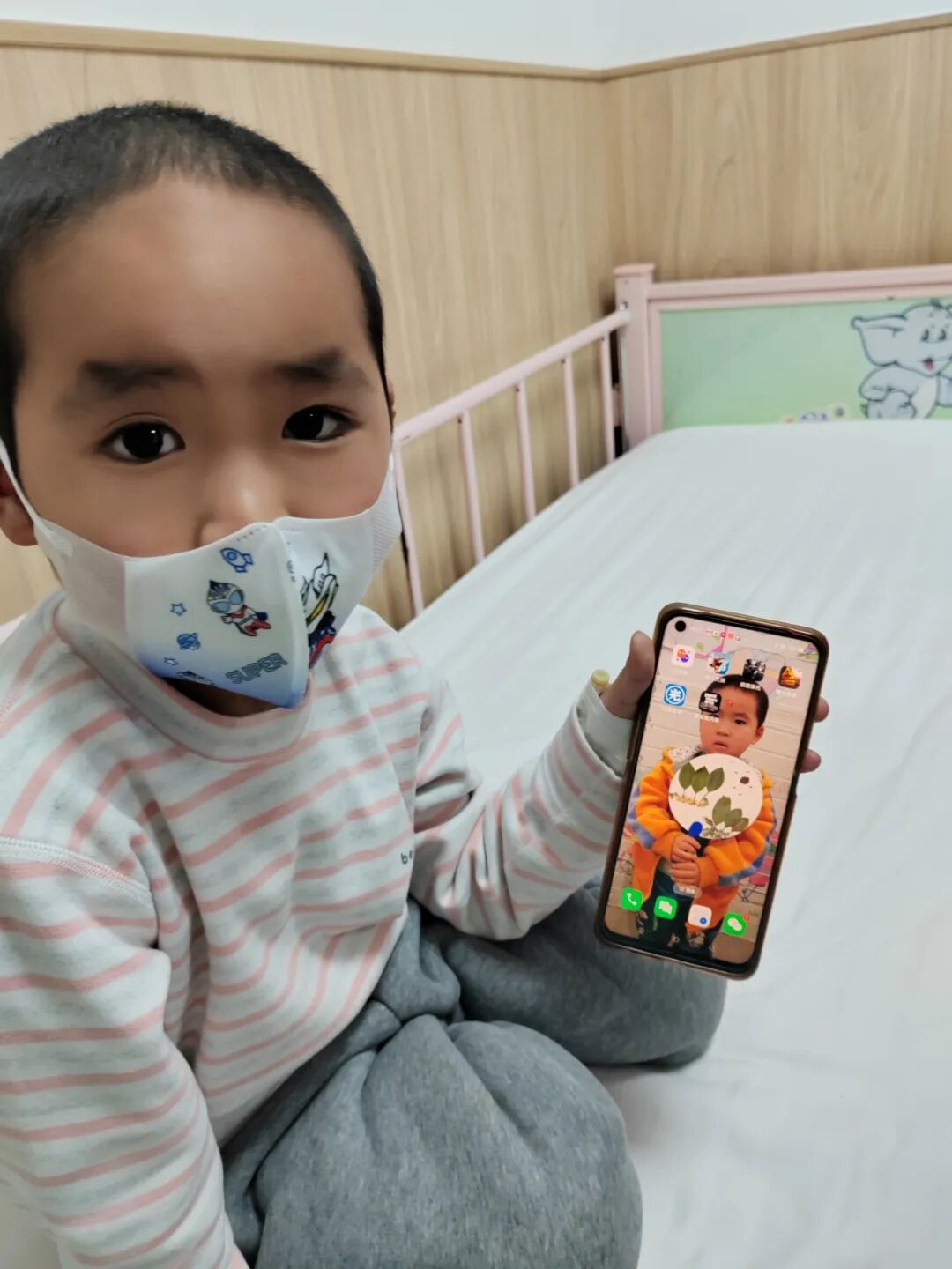 当妈妈下楼拿药的时候,豪豪一个人在病房里默默地玩着手机。他的头发已经长出来了,看上去特别的清秀。虽然他仍然有些内向,但可以看出他已经变得更加勇敢和坚强。