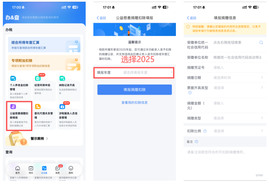 在你的个人所得税APP里找到“公益慈善捐赠扣除填报”一栏,按要求输入公益机构的统一社会信用代码、受赠单位名称、输入捐赠金额、捐赠凭证号、选择扣除比例(通常是30%)、备注说明捐赠的年月或项目。