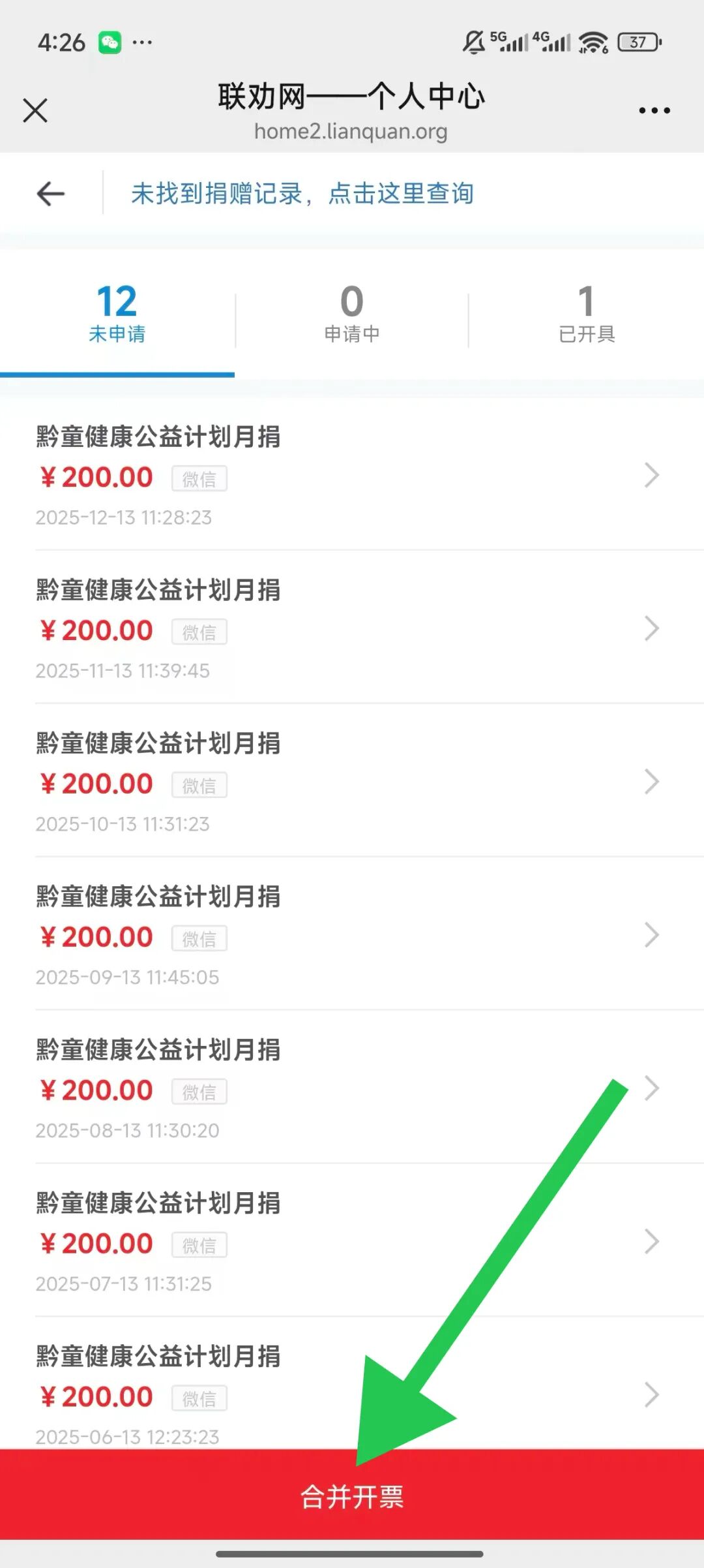 2、如果你支持的是亚桥公益-黔童健康计划项目,您的票据申请通道: