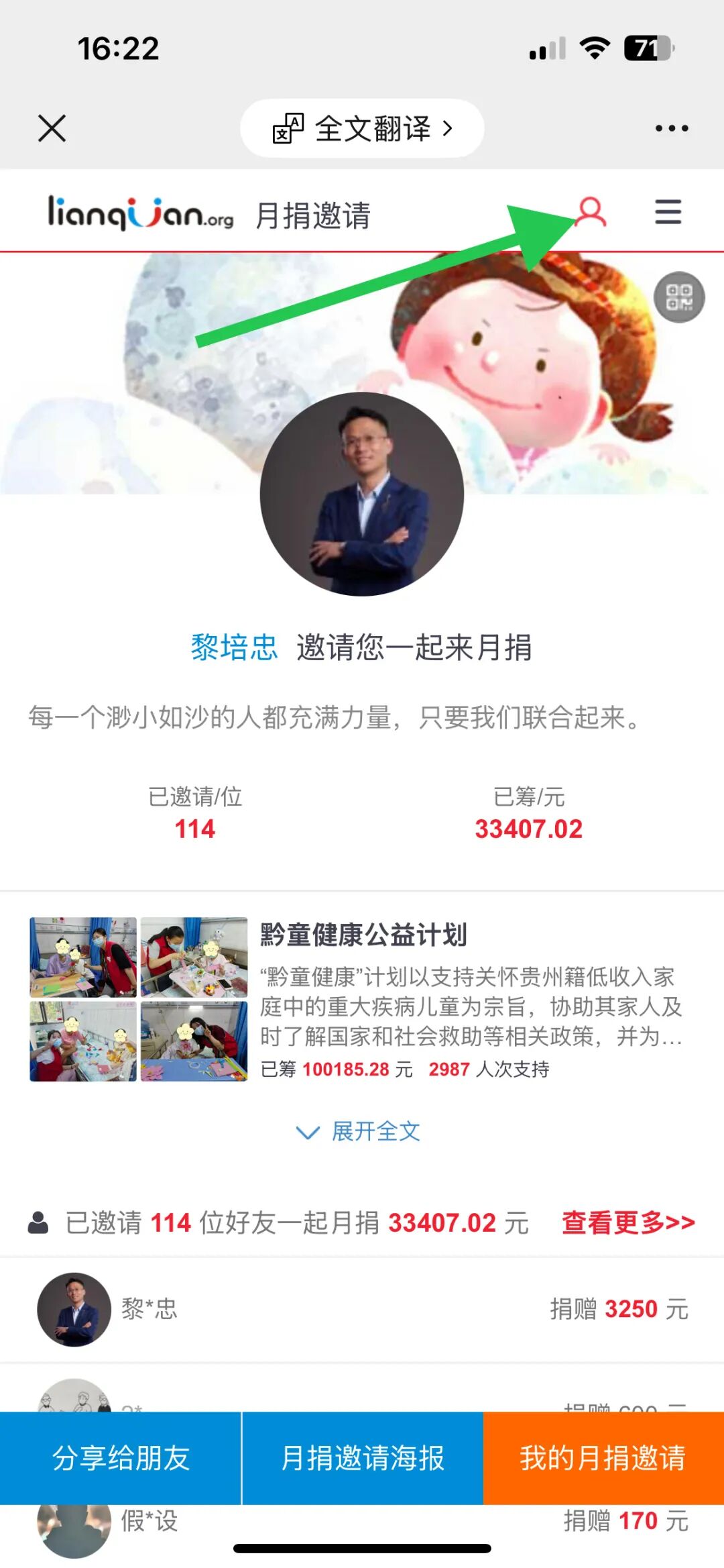 ① 识别下方二维码进入联劝公益平台