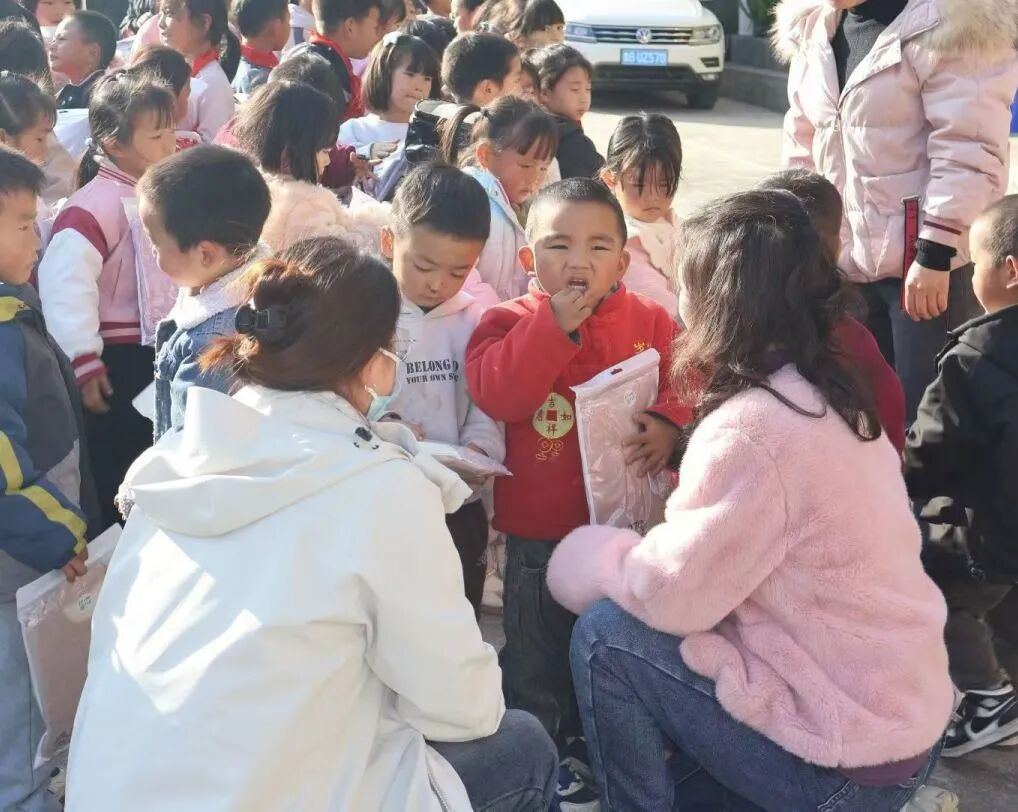 孩子们礼貌的回应感谢,简单的话语,一句“谢谢”,一个微笑,被镜头悄悄记录,也成为这冬日里最动人的风景。