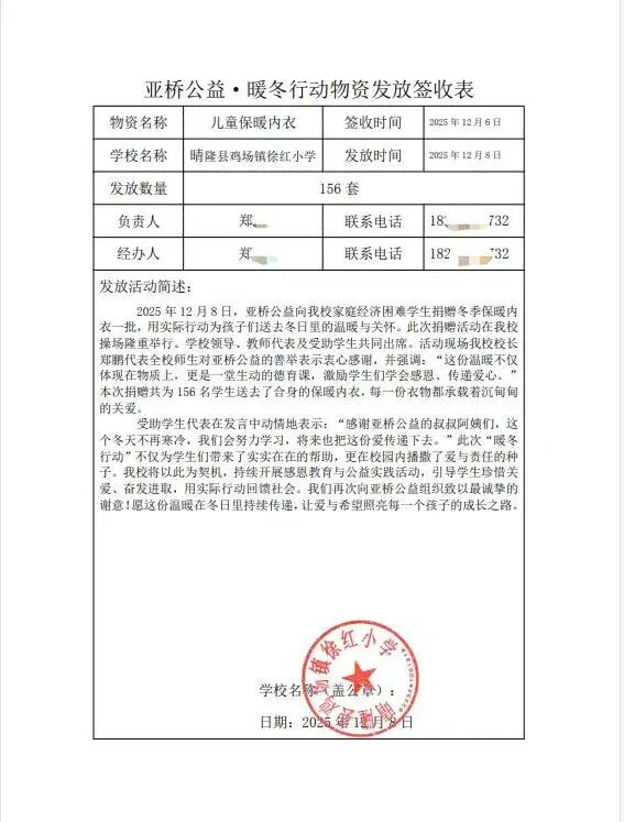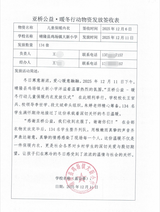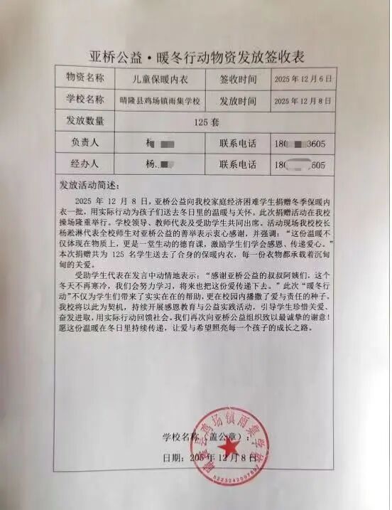发放的镜头里,孩子们手捧新衣,眼中闪着光。这些瞬间,我们将用心珍藏。